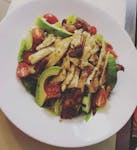 Romaine lettuce, tomatoes, cucumbers, avocados, and pecorino cheese topped with bacon, grilled chicken, and Caesar dressing.