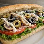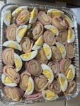Mixed salad green topped with ham, turkey, wedge of eggs, tomatoes, cucumbers, carrots, red onions, pepper, olives, provolone & American cheese.