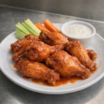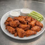 Chunky blue cheese topped with chunks of buffalo chicken tenders, and mozzarella cheese.