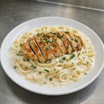 Chicken breast & alfredo sauce served with fettuccine.