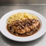Chicken breast with mushrooms, Marzala wine served with fettuccine
